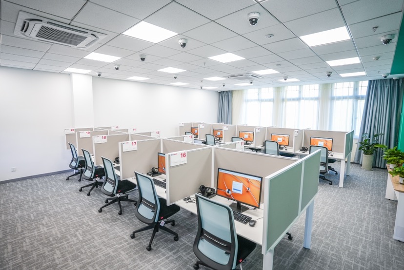 独立的口试房间宽敞舒适,考生可通过电脑音视频设备,在线上实时与一名真人考官进行沟通交流。每个口试房间配备降噪耳机、降噪地毯等,助力每一位考生都能在安静的环境中发挥自己的真实水平。