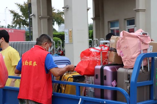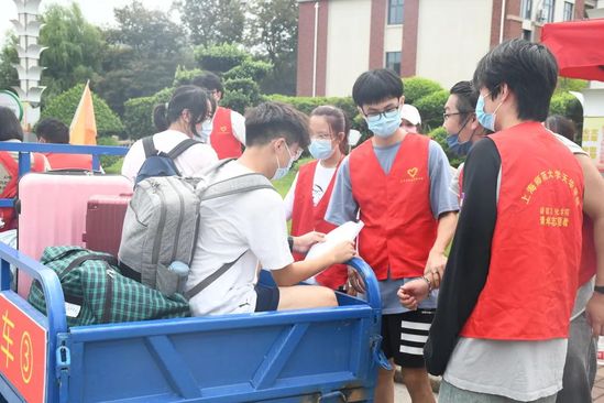校团委组织迎新志愿者培训,对工作岗位和职能进行明确,对迎新报到现场进行直播。学校在嘉定西站设立迎新点,为远道而来的新生提供接站服务。学校后勤、车队调用大巴、电瓶车、小推车等为入校新生进行行李的短驳运输,1300余名志愿者在校团委统一调配下,穿梭在各个岗位,两日共计完成16895件包裹的运输、寄存工作。