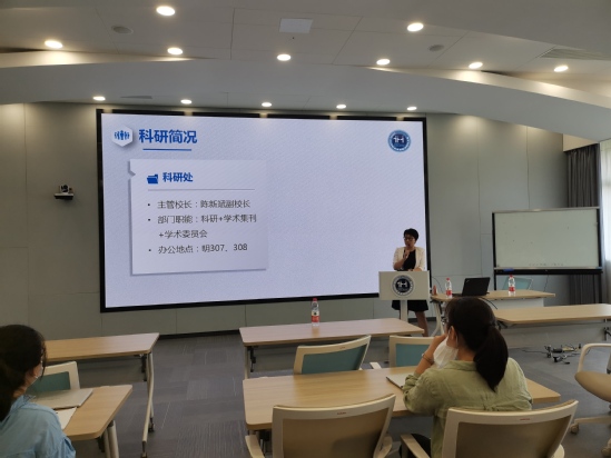 接下来,科研处常务副处长郑宁就科研项目的申报问题,向各位新教师详细讲解了金年会的科研简况、项目申报的类型及流程、项目申报的具体管理以及成果奖励制度,热情鼓励大家多申报课题,多做科研项目,希望大家在教学之余继续自己的研究项目并取得丰硕的科研成果。