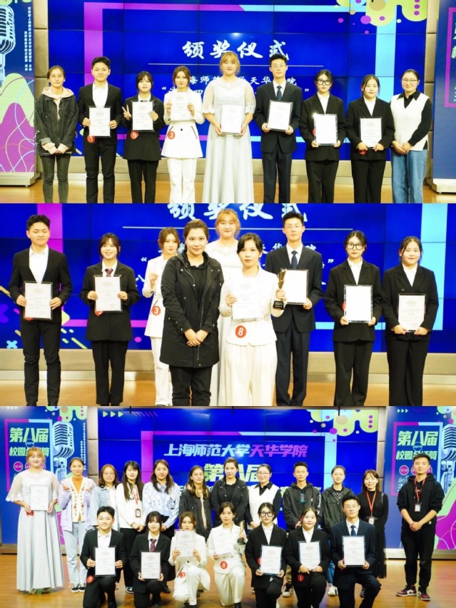 经过紧张激烈的比赛,最后由学前教育学院的李好同学斩获本次“金话筒”奖,其余同学荣获优胜奖。由学前教育学院教师孙娜和马克思主义学院教师张旭为本次比赛优胜奖选手颁奖,并由学保处副处长、校团委书记杨央为本次“流光四海绽,佳音万里传”上海师范大学金年会第八届主持人大赛“金话筒”奖的选手颁奖。