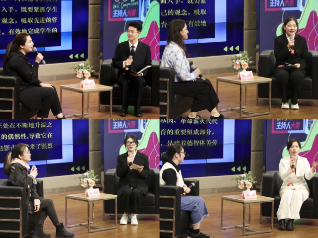 在稍事休息后,前两轮比赛总分排名前四的选手们进入到了更为紧张刺激的“模拟访谈”环节。这一环节考察了一名主持人的基本素养,这对他们的临场表现力和语言组织能力都是极大的考验。选手们与被访谈的对象谈笑风生,毫无压力的完成了访谈。在极短的时间内,选手们就表现出了强大的抗压能力和高超的主持水准,同时更彰显出了金年会学子出众的才华。