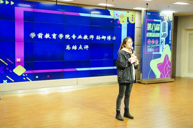 整场比赛结束过后,学前教育学院专业教师孙娜博士上台进行了总结点评。她首先赞扬了21级新生们在这次金话筒比赛中展现出来的精神面貌和高超水平,同时她也提出了几点建议。她希望同学们在日常生活中能够去了解更多的时政新闻,紧跟时代的潮流。她也希望同学们能够更加自信大方,尽情展现出自己独特的风采,在表达自己想法的同时,通过一次次的尝试获得经验、提升自我。最后,她祝愿每个同学都能够在金年会找到属于自己的舞台!