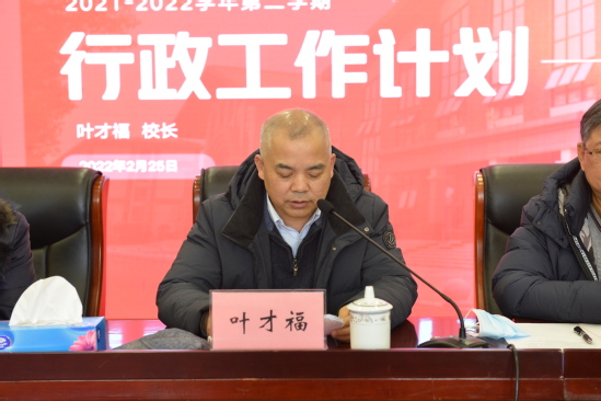 2月25日上午,学校在晖华楼报告厅举行2021-2022学年第二学期期初干部大会,谋划新学期、新阶段各方面发展计划。学校董事长邹荣祥出席会议并作重要讲话。执行董事长石伟平主持会议。党委书记陆建非、校长叶才福、总校监郭伟奇、监事长韩晓玉出席会议。参加会议的还有全体校务委员会成员,二级学院正副院长、党总支正副书记、支部书记、专业主任、办公室主任,职能处室正副处长及部门助理级以上干部等。
